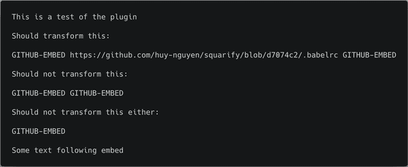 Note that instead of hard coding the embedding marker to be GITHUB-EMBED, we’ve made it a configurable option marker.